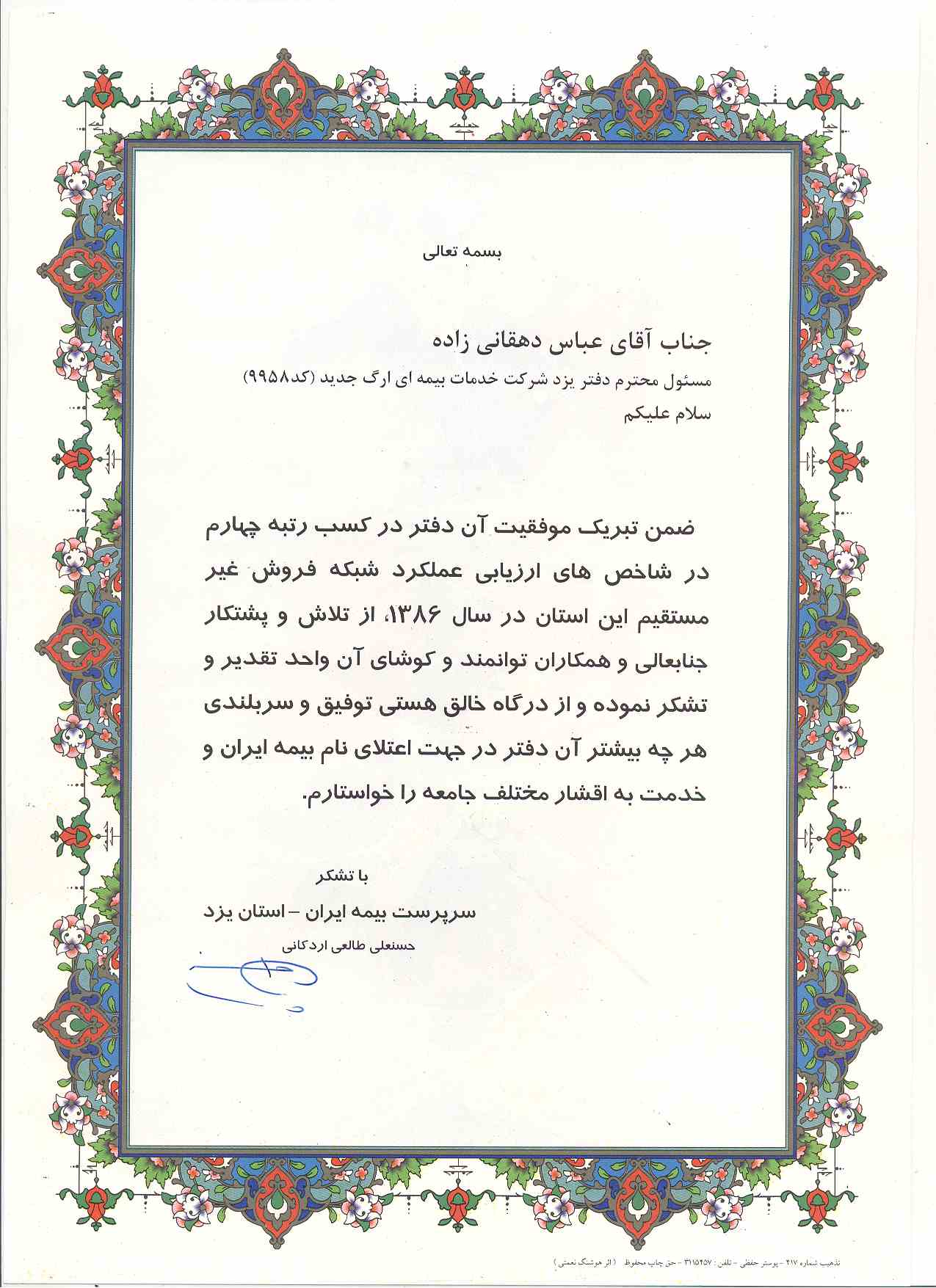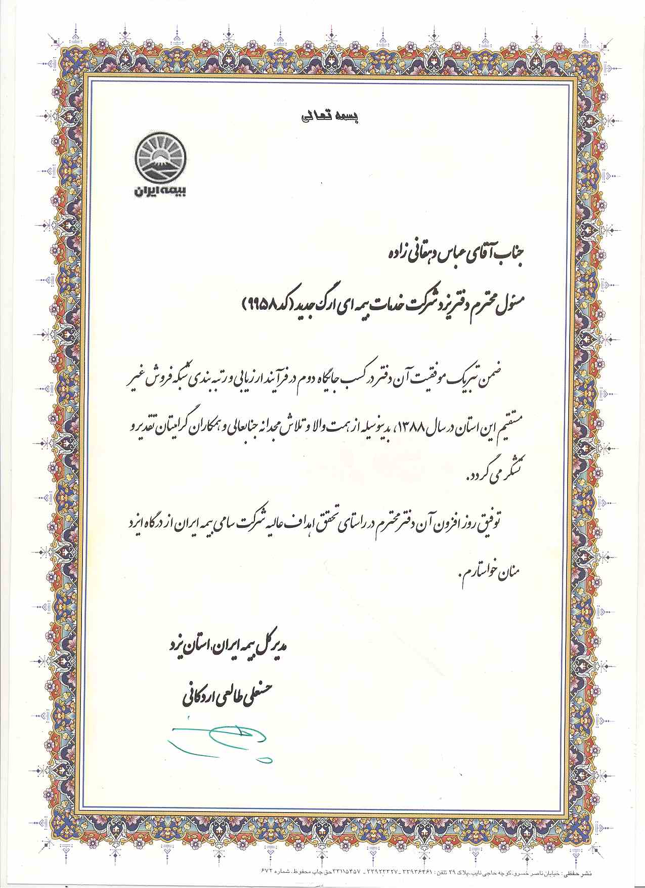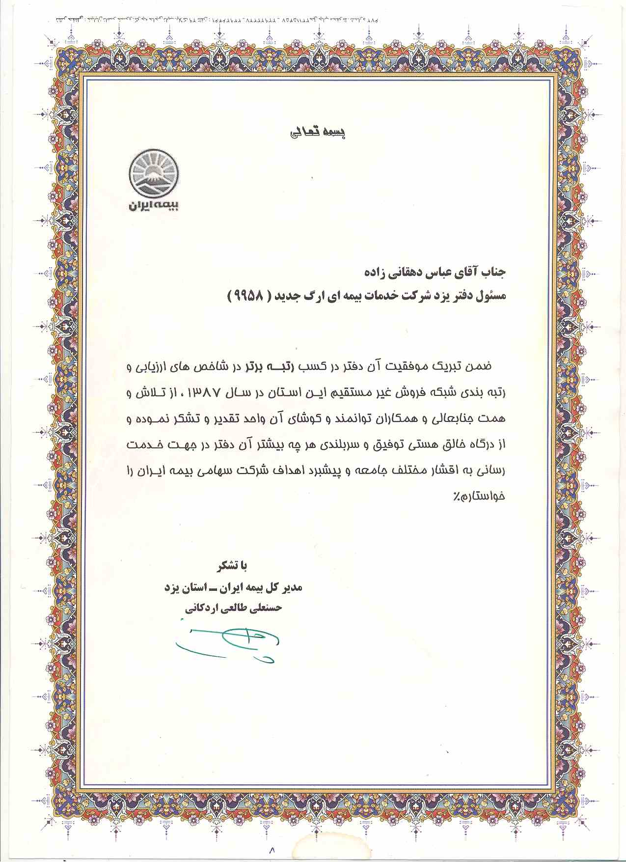 مدیریت شرکت بیمه ارگ جدید شعبه یزد از سال 1379تا 1389
